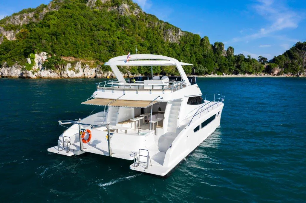Experience the epitome of luxury with our private yacht charter Ang Thong National Marine Park (Golden Bowl) aboard the stunning Power Catamaran 52ft. This custom-built 52-foot power catamaran is powered by dual 315 hp engines, ensuring a smooth and swift journey across the turquoise waters, making it an ideal choice for a private yacht day charter.