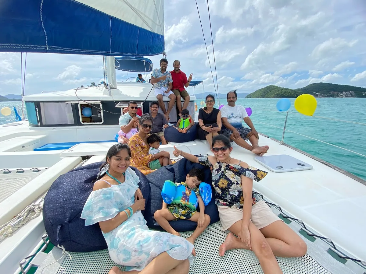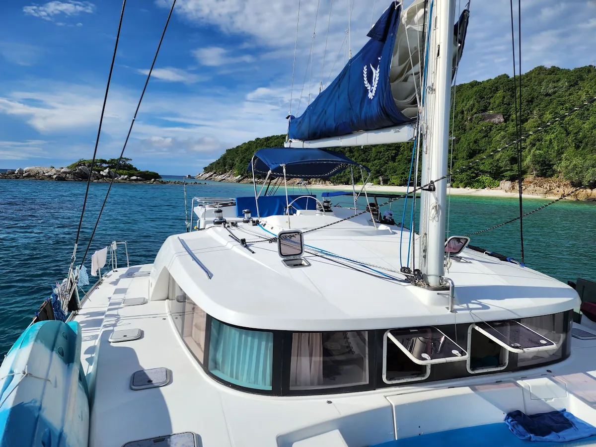 Sail the turquoise waters of Phuket on a 44' Lagoon catamaran, exploring Maithon and Coral Island's stunning beaches. A perfect day awaits!