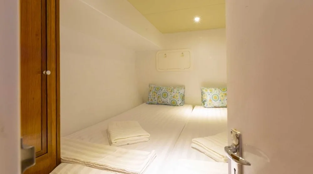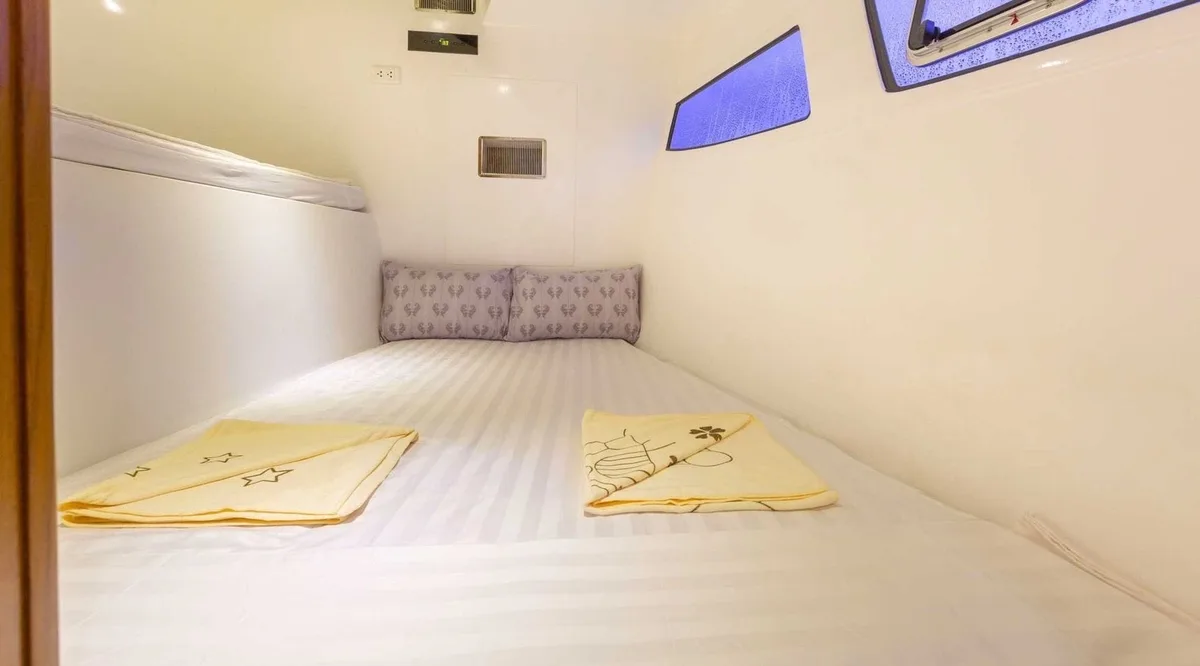 You will cruise with a speed of 7 knots on your trip to Phi Phi Island (10h) and be impressed by amenities like Flying Bridge, Freshwater Shower, Multiple Decks, Multiple washrooms, Saloon as well as 2 Kayak, 2 Paddle boards, Floating Pool, Snorkeling masks, Water Slide.
