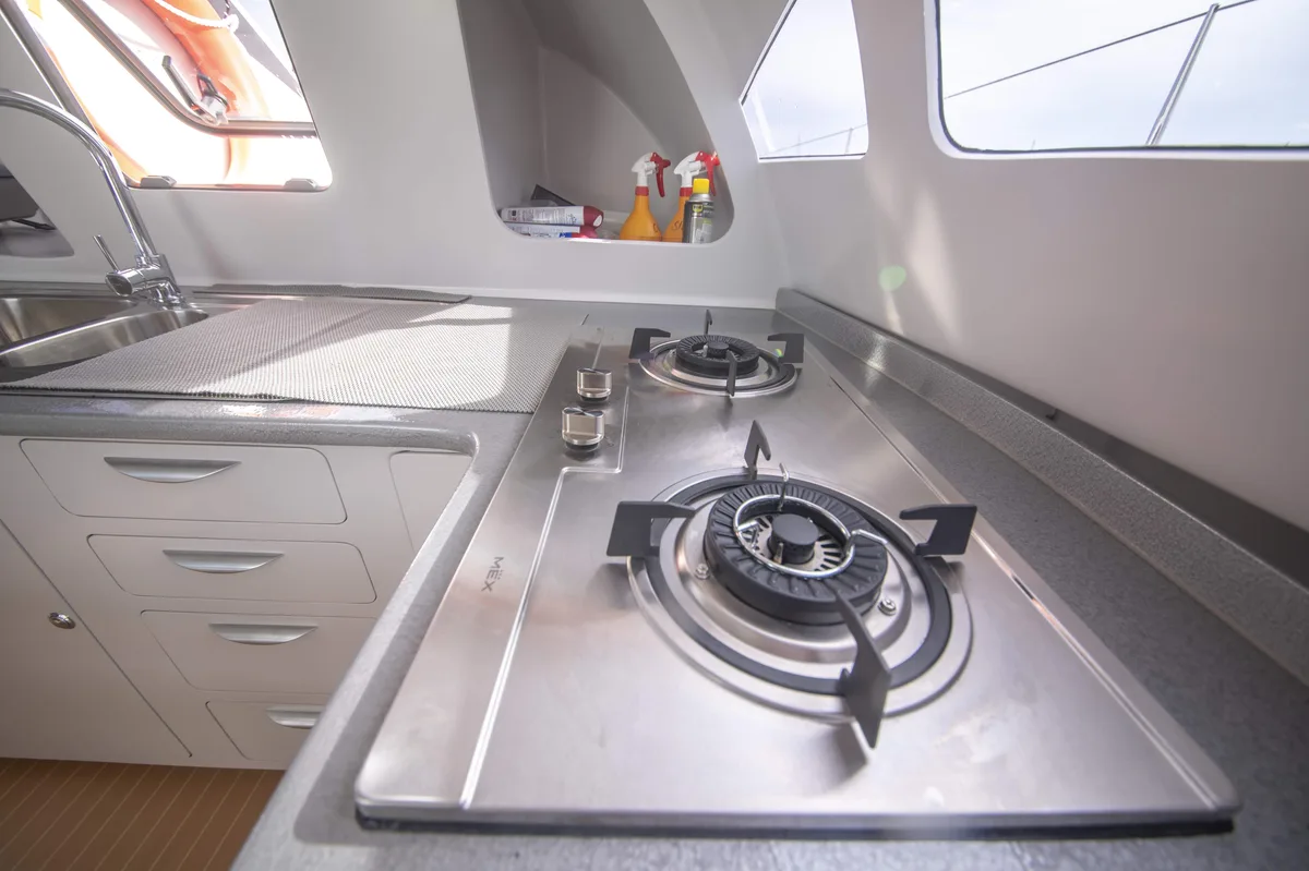 You will cruise with a speed of 13 knots on your trip to Phi Phi Island (8h) and be impressed by amenities like Flying Bridge, Freshwater Shower, Multiple Decks, Multiple washrooms as well as Fishing gear (on request), Inflatable Toys, Kayak, Paddle board, Snorkeling masks, Towable Toys, Water Slide.