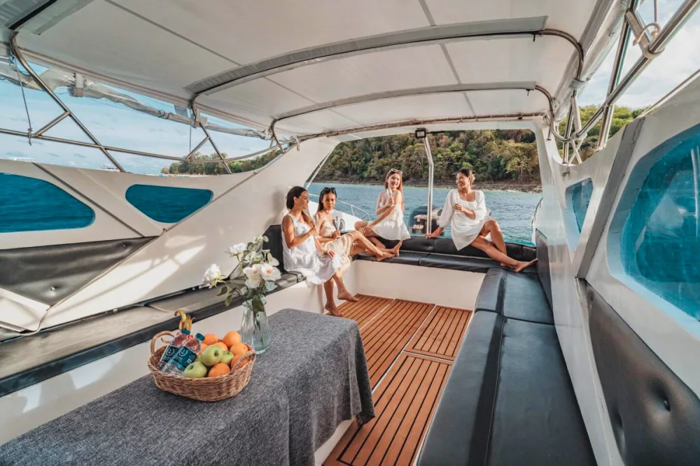 Cruise the stunning Phi Phi Islands on a custom 40ft speedboat! Enjoy a full-day adventure with up to 20 friends, exploring Coral Island and Banana Beach.