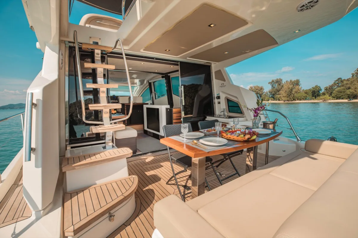 Sail the stunning Phi Phi Islands on a luxurious 58' Cranchi motor yacht. Perfect for 10 guests seeking adventure, relaxation, and breathtaking views.