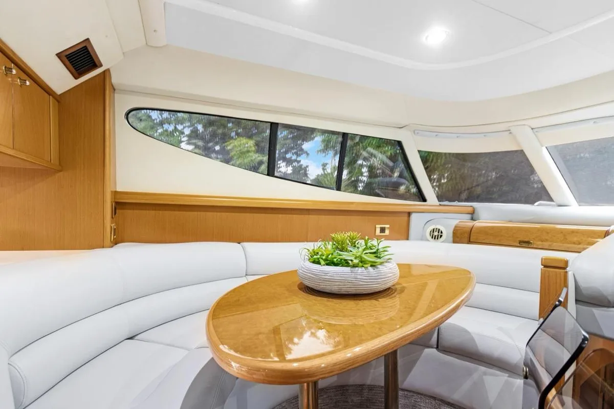 The spacious split-level saloon offers a large seating area with an entertainment centre and dining area upstairs.
