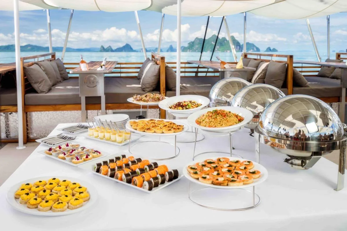 Get the vibe - on the most stylish party catamaran for charter at Phuket. Up to 80 guests can enjoy weddings, birthday partys or business events of their lifetime. Embark to the most beautiful islands around Phuket with this huge catamaran, DJ & Bartender included!