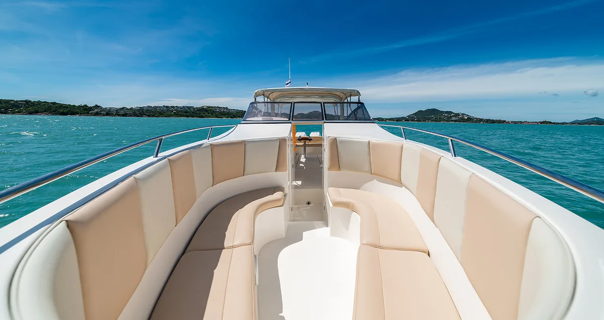Sail from Koh Samui to Koh Phangan on a sleek 38ft speedboat, diving into 4 hours of private adventure for up to 15 guests with sun and sea.