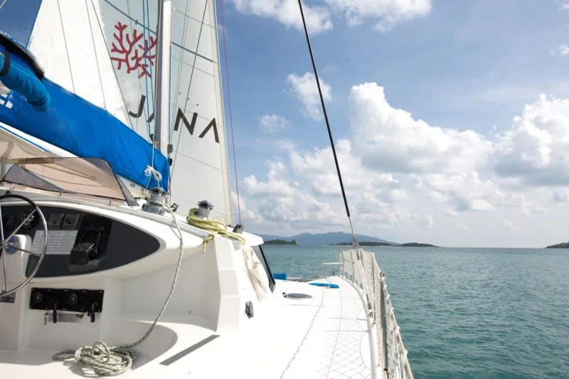 Experience the breathtaking beauty of Koh Phangan, known for its secluded beaches and vibrant marine life. Enjoy a variety of activities, including swimming, snorkeling, and exploring pristine coves that are only accessible by boat. The catamaran features ample seating in the rear cockpit and relaxing trampolines at the front, providing the ideal environment for sunbathing and enjoying the serene surroundings.