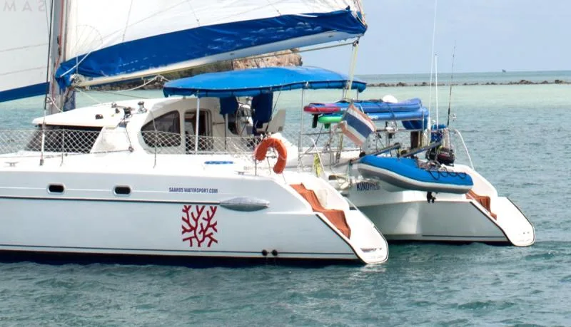 One of Samuis finest vessels: The Belize Catamaran of Fountain Pajot features 3 AC double cabins and a saloon like a luxury living room with 360 degree sea view. Best deal for private yacht charters!