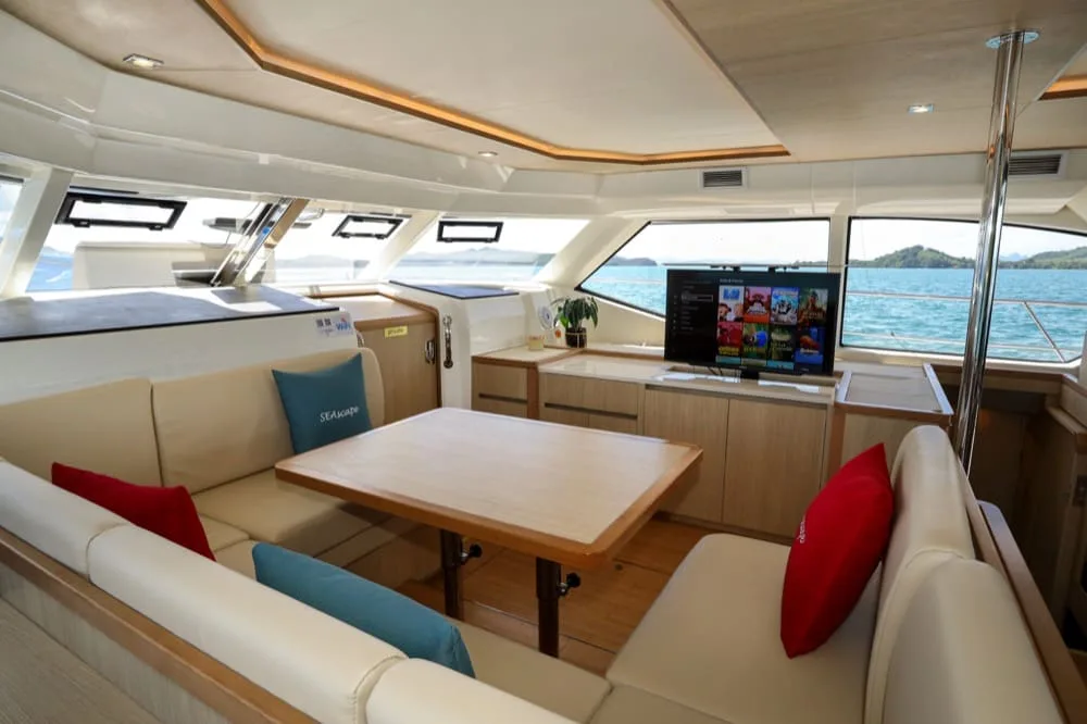 When coconuts and catamarans meet, magic happens in Thailand! Our full-day island hopping tour on the Sunshine, a sleek Aquila 44ft power catamaran, is your ticket to bliss. With room for up to 22 guests, you'll be cruising the stunning waters around Krabi and the magnificent Racha Islands (Raya islands) like a rockstar.