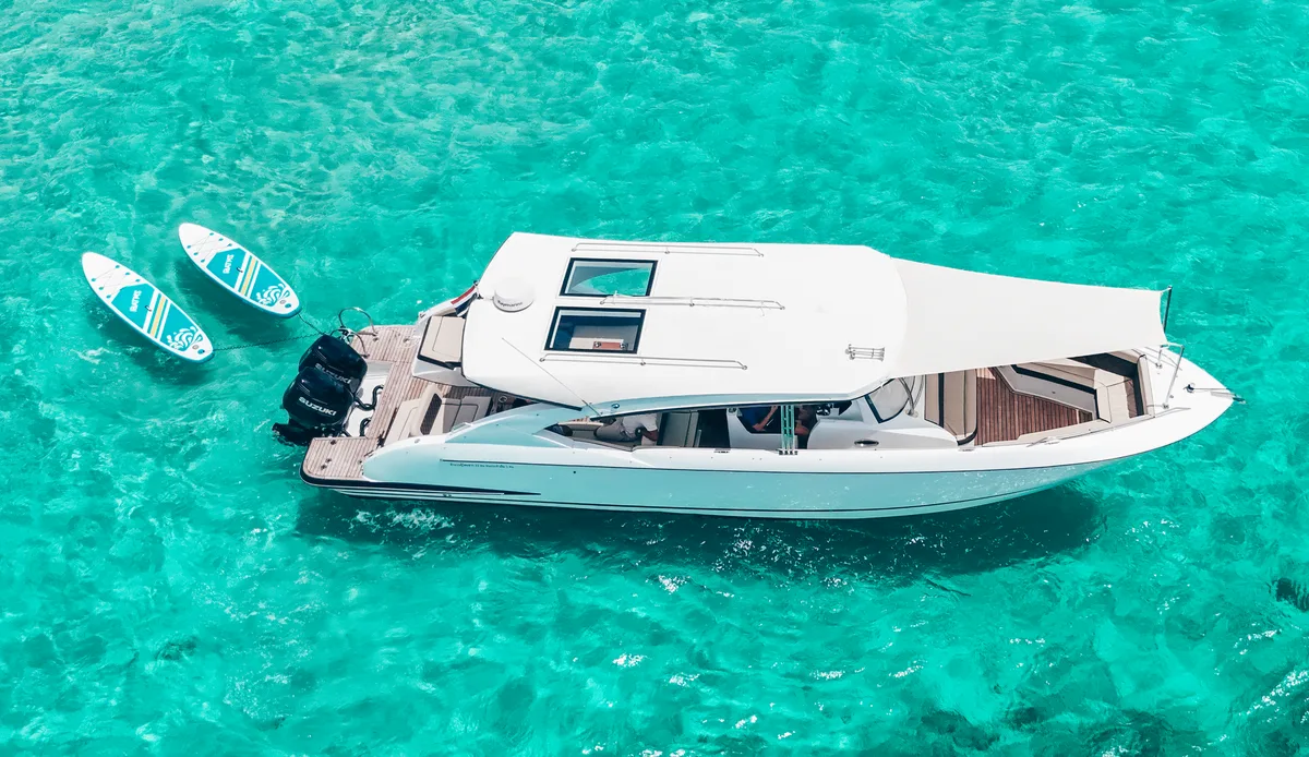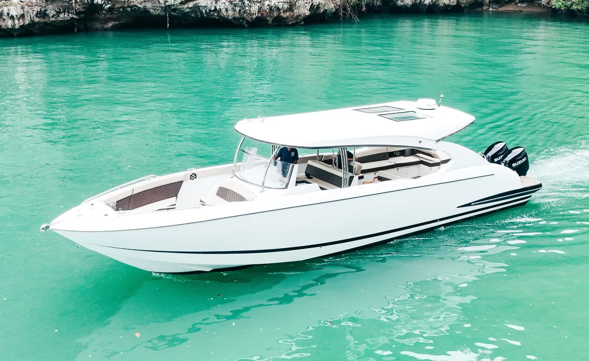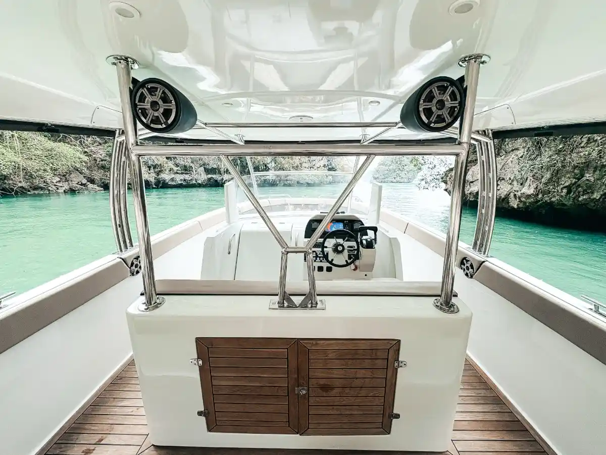 Our brand-new 2025 luxury speedboat for private Charter redefines exciting island-hopping in Phuket for up to 20 passengers. Designed for comfort and performance, it offers spacious seating and modern features like high-end sound system.