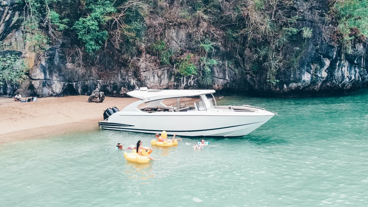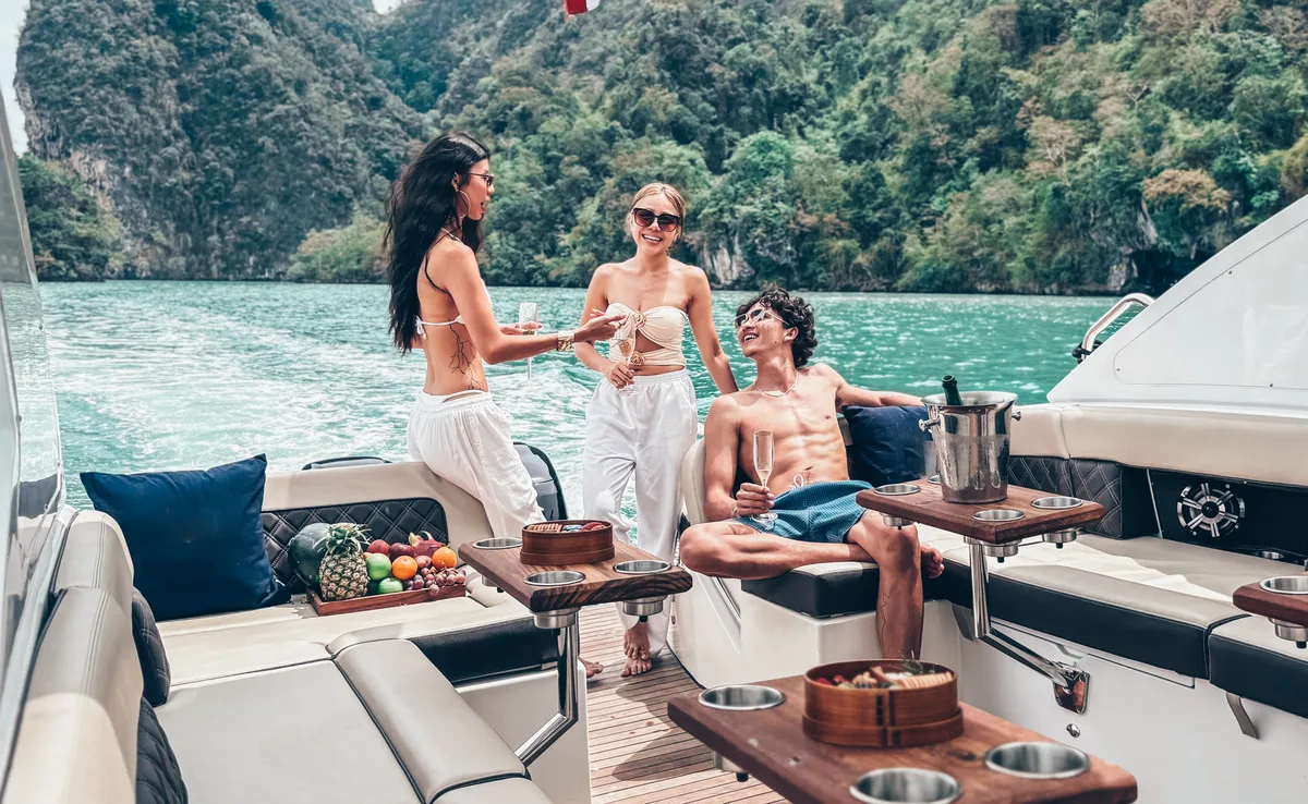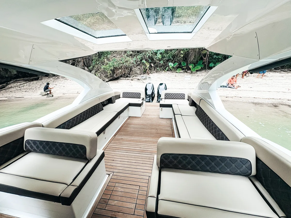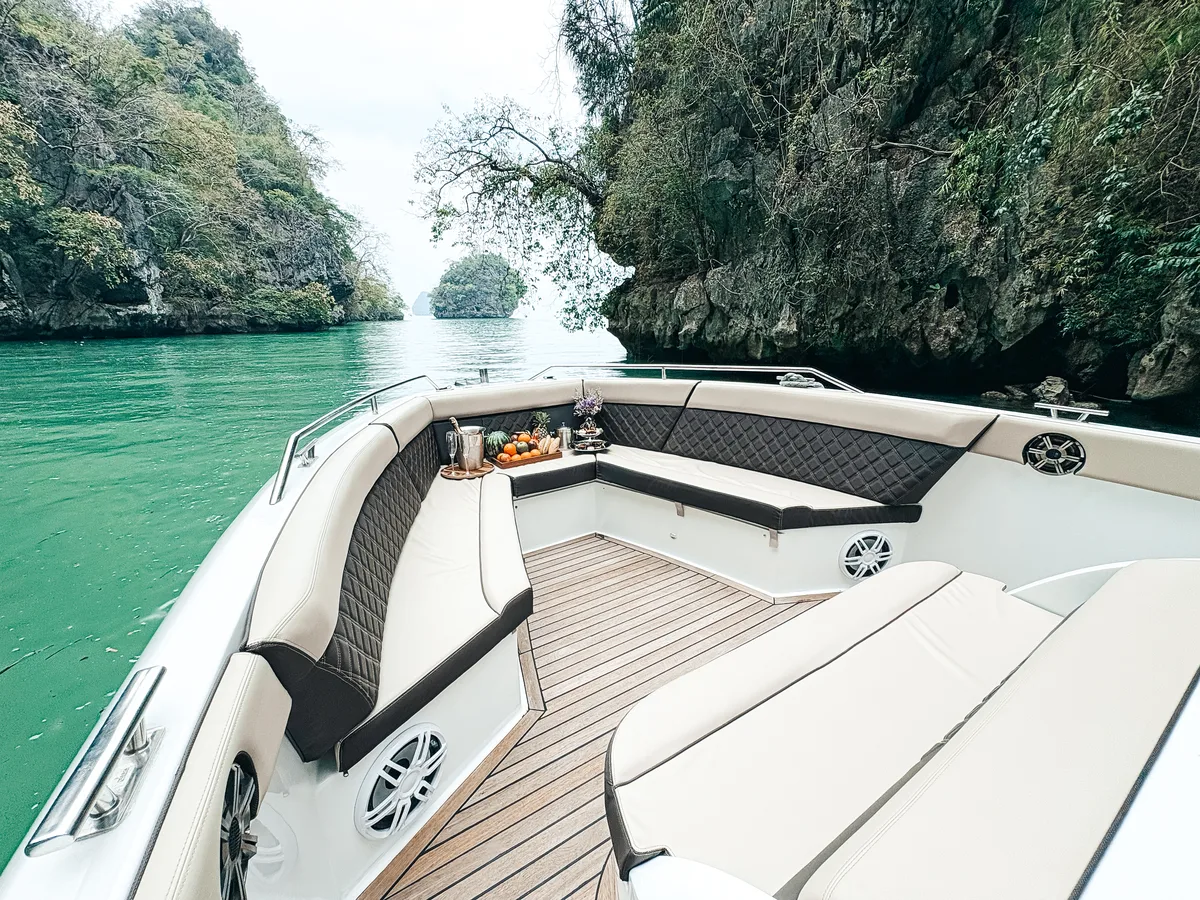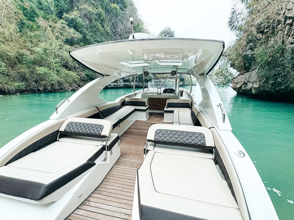 The Jeab, our Luxury Speedboat 42ft, cuts through Andaman swells with surprising grace for a vessel that prioritizes comfort over racing credentials. Twenty guests maximum means actual elbow room instead of sardine-tin socializing that plagues larger tour boats.