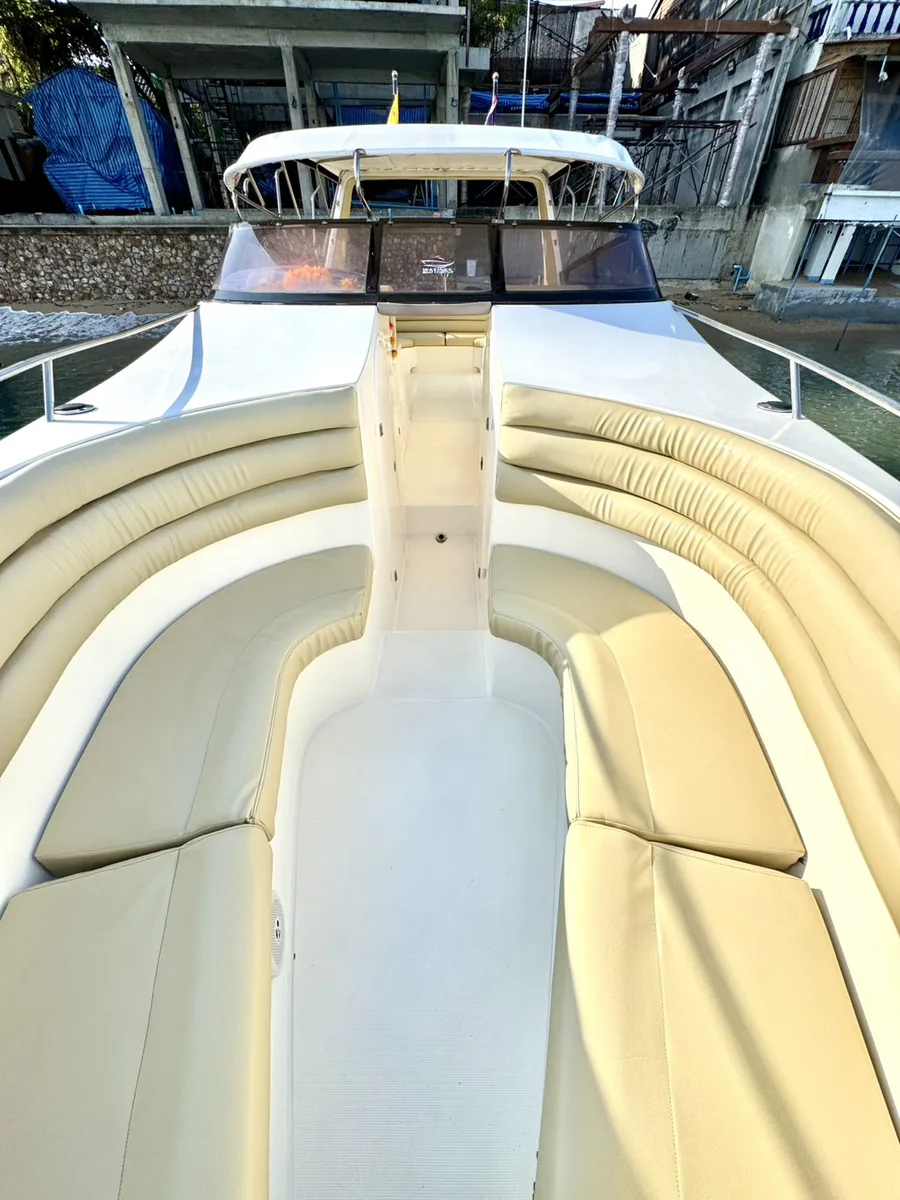 This Seat Boat 39ft cuts through Thai waters like a blade, reaching secluded beaches that larger vessels simply cannot access. What matters in Thai waters is speed and agility - Wasabi delivers both with twin 400hp engines that make the 45-minute journey feel effortless.