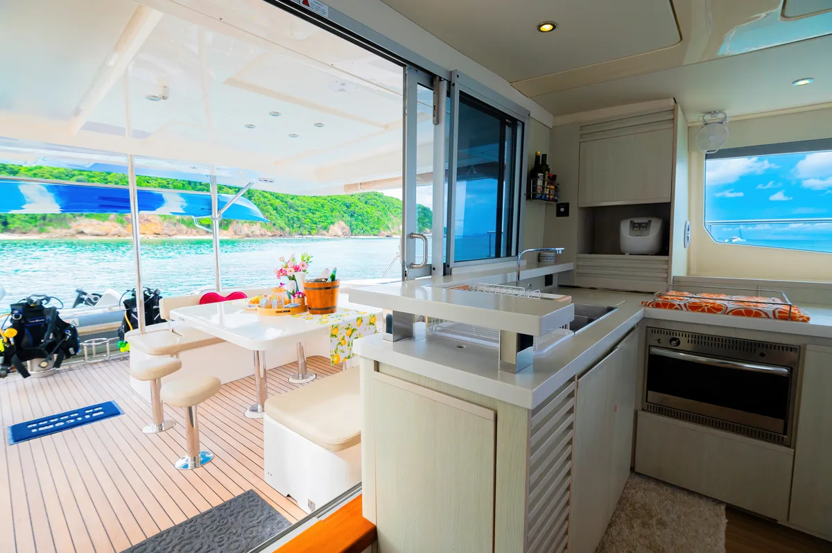 The Leopard 51 Power Catamaran is a fast and luxurious vessel, freshly refitted in 2024 to feel like brand new. Featuring 4 spacious cabins, it accommodates up to 8 overnight guests and 35 for day trips, making it perfect for exploring in style and comfort.