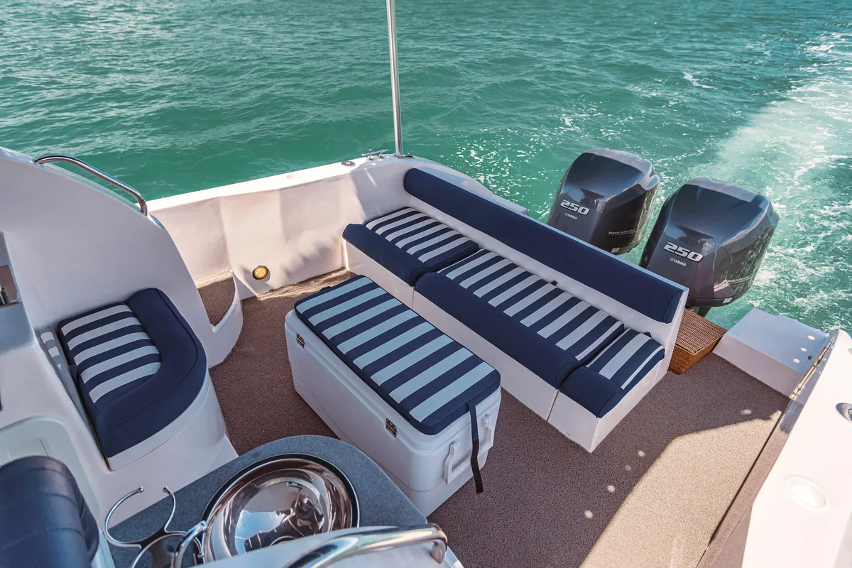 This is neither a yacht nor a speedboat, but the perfect mix of both. For everyone who wants to rush through the water with maximum luxury and full throttle at the lowest price and reach distant destinations. For couples and small groups of up to 8 people.