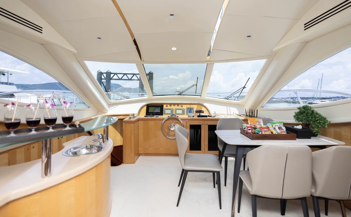 Discover Naya, the elegant Vtech 68ft yacht, designed for unforgettable voyages. Accommodating up to 30 day guests (and 6 sleeps), it features spacious cabins, modern bathrooms, a panoramic living area, and a fully equipped kitchen. Perfect for luxury and comfort on the water!