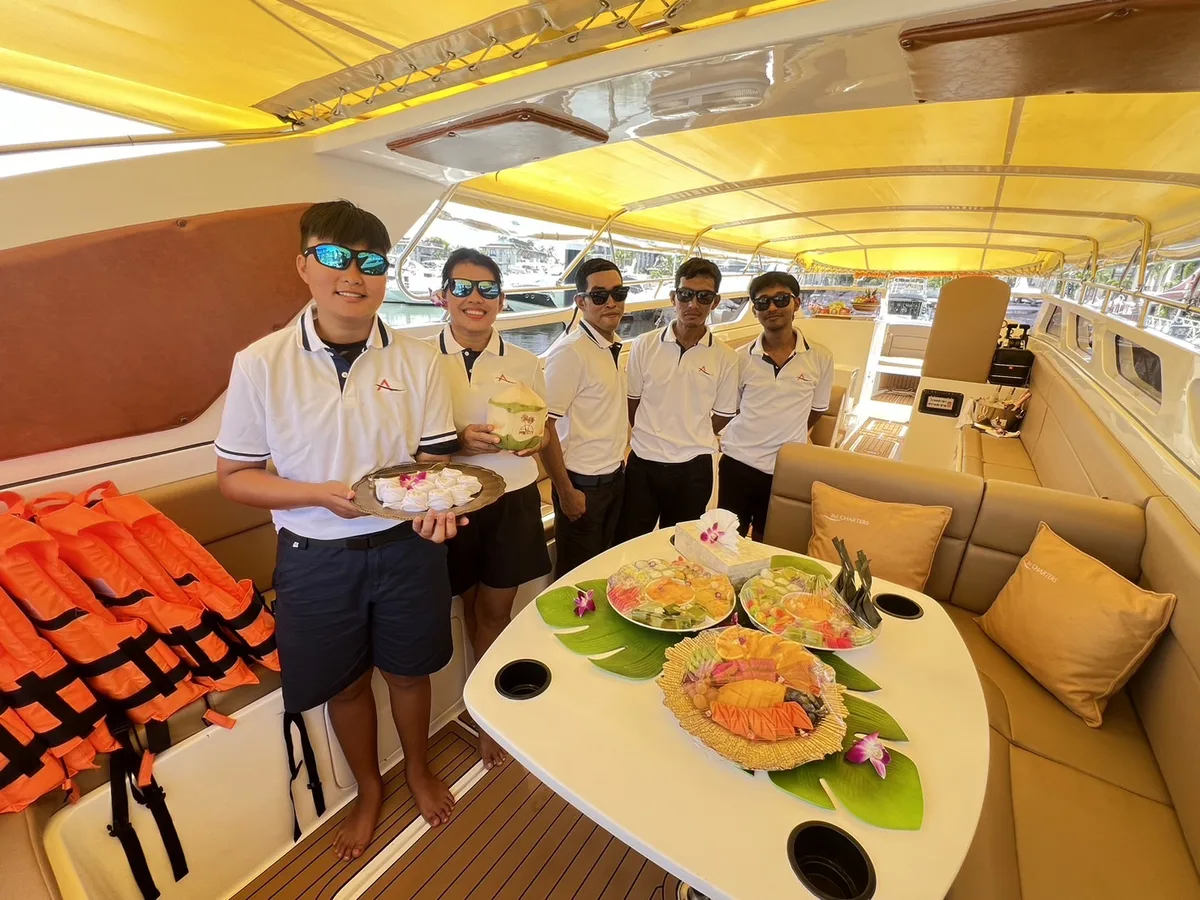 Luxurious speedboat with first-class hostess service, washroom and water toys. Ideal for groups of up to 30 people who want to explore more distant destinations such as Phi Phi or Krabi Islands.