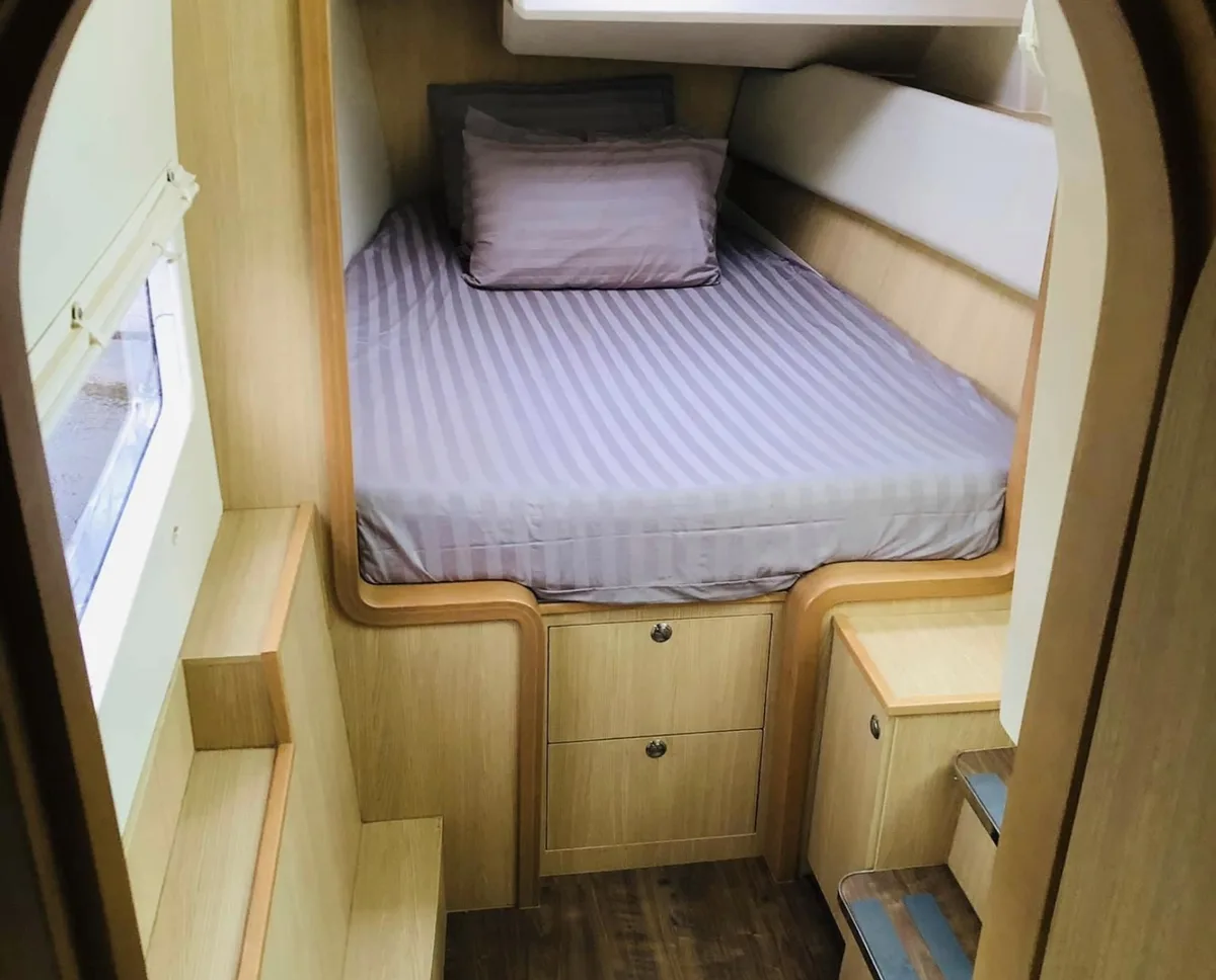 This is the magic carpet of charter boats in Krabi: a totally innovative approach to having fun on the water. A powerfull catamaran that can day boat with up to 10 revelers and all their water-toys or provide complete privacy for up to 4 guests on an adventure to newfound destinations.