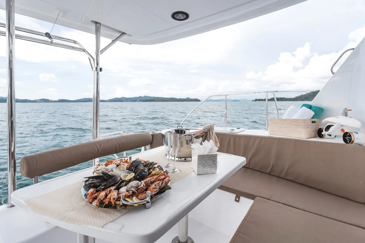 Our charter Catamaran Leopard 39 from South Africa is a great experience for anyone who wants to explore Phang Nga Bay / James Bond Island in style and wind. Also ideal for overnight tours in this breathtaking area. High-class service and water toys included.