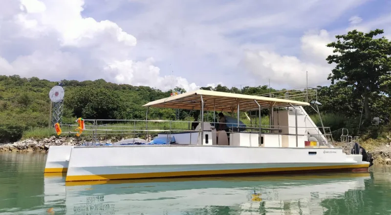 This rather simple charter catamaran offers groups of up to 30 people wonderful hours in the south of Koh Samui – Koh Madsum (Pig Island), Koh Taen, 5 Bird Nest Islands). The luxury of this boat is limited to the friendly and helpful crew. A tour to the pink dolphin watching is also possible.