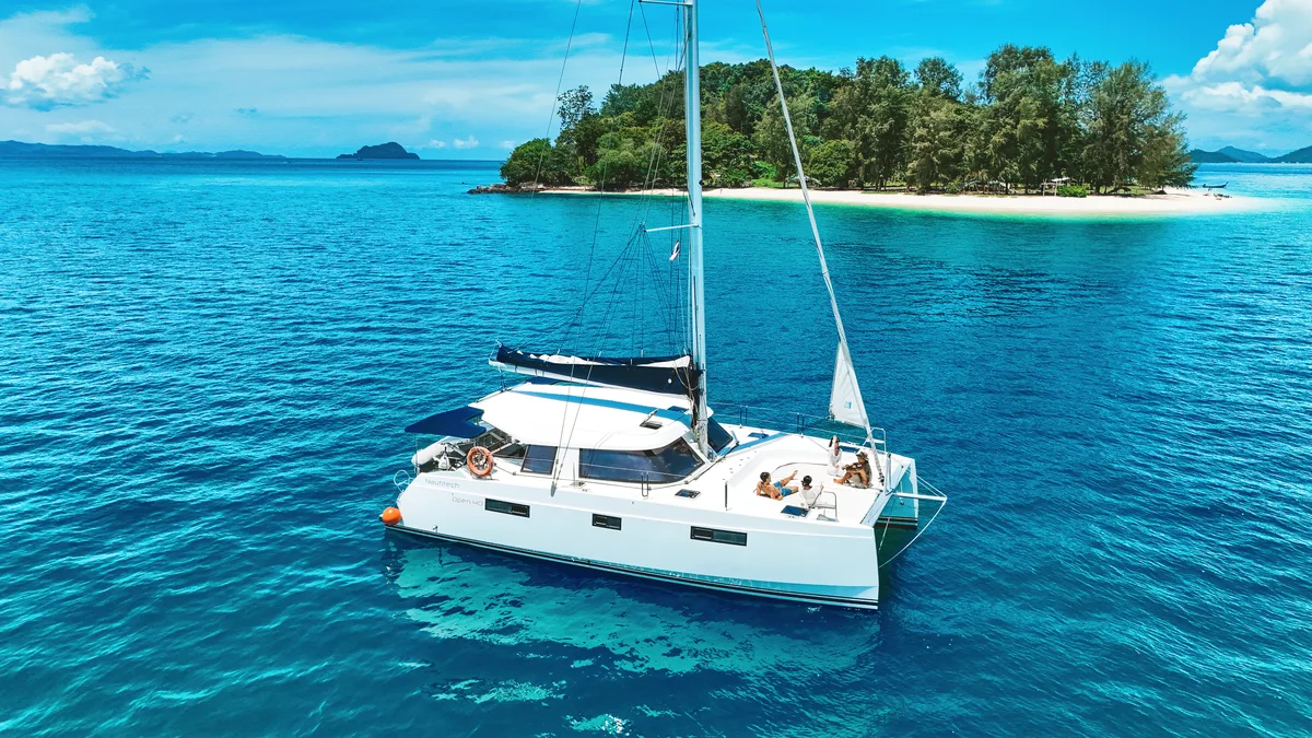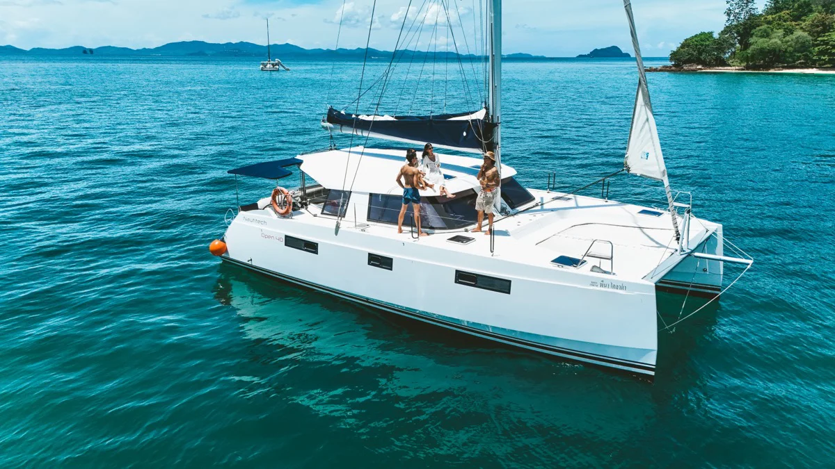 Our Nautitech 40 is a spacious and well-balanced 40-foot sailing catamaran for Charter in Phuket, ideal for relaxed cruises through the stunning landscapes of Phang Nga Bay. Ideal for day trips with up to 14 guests or overnight tours for up to 8 guests.