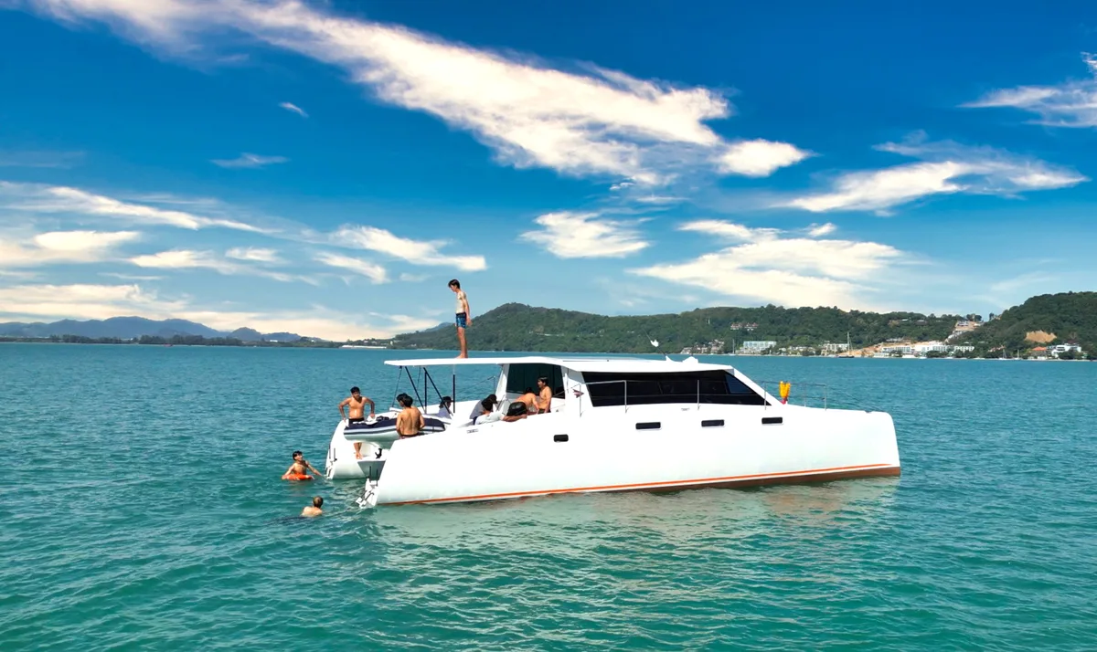Cruise to the stunning Phi Phi Islands aboard a sleek 45' Stealth power cat. Unwind and explore, with space for 25 guests on an unforgettable day!